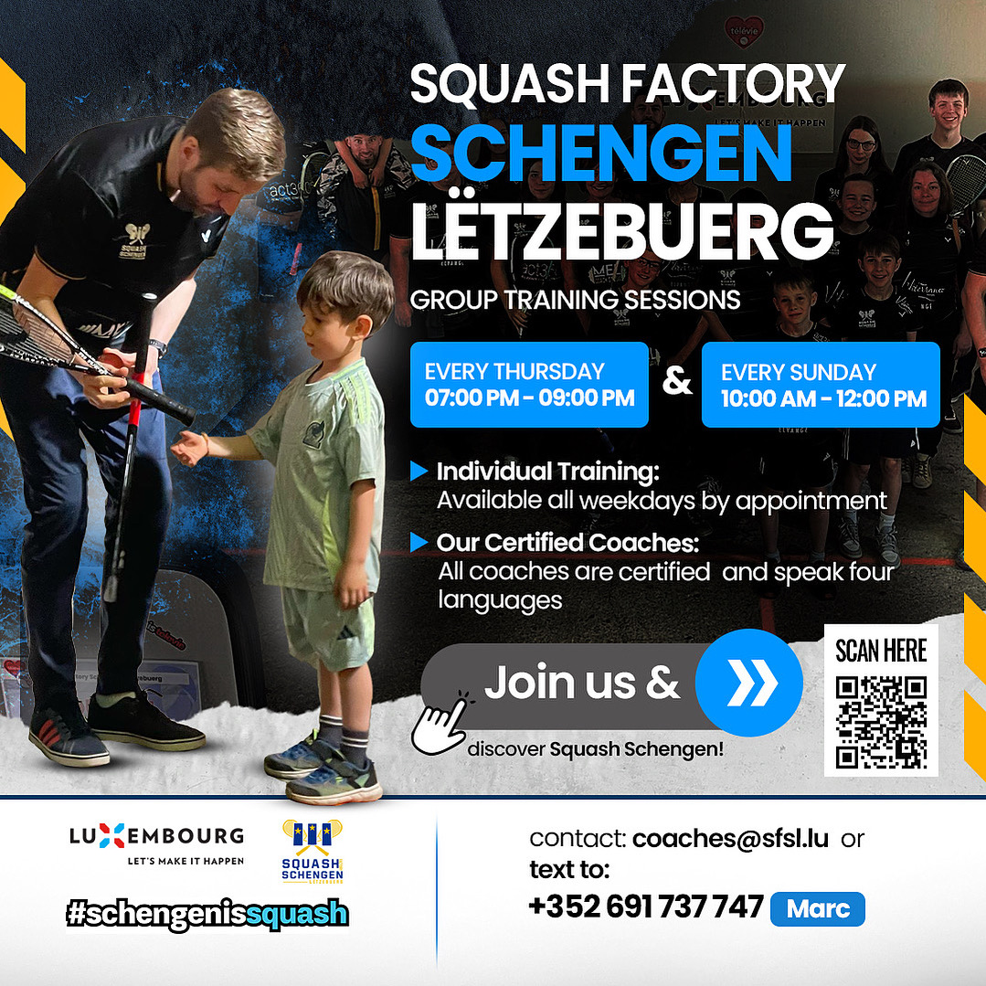 DE Unterstützt unseren Club — Unterzeichnet die Petition, um Squash Factory Schengen-Lëtzebuerg zu retten